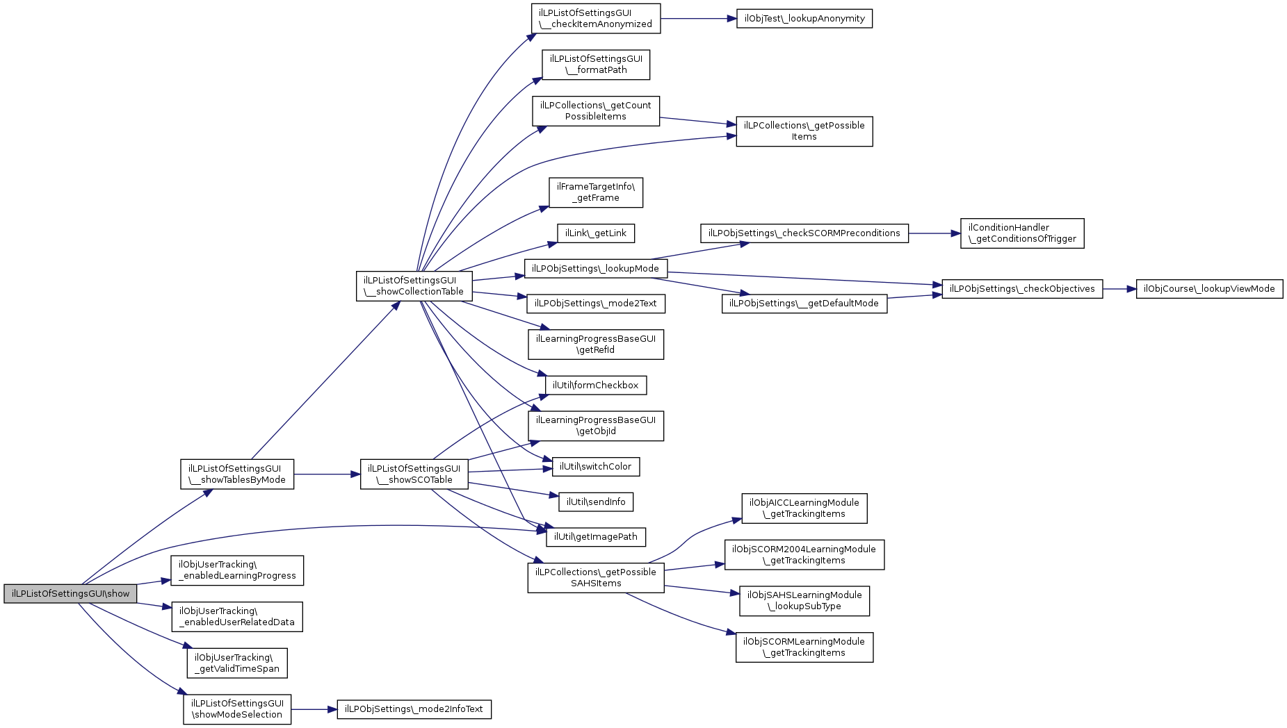 References __showTablesByMode(), ilObjUserTracking\_enabledLearningProgress(), ilObjUserTracking\_enabledUserRelatedData(), ilObjUserTracking\_getValidTimeSpan(), ilUtil\getImagePath(), LP_MODE_VISITS, and showModeSelection().