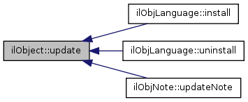 Here is the caller graph for this function:| ilObject::update | ( | ) |