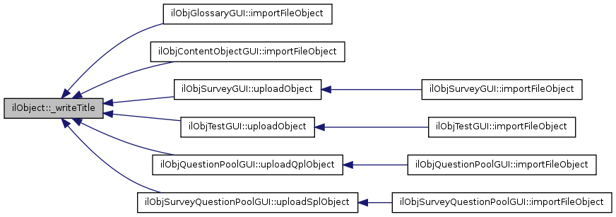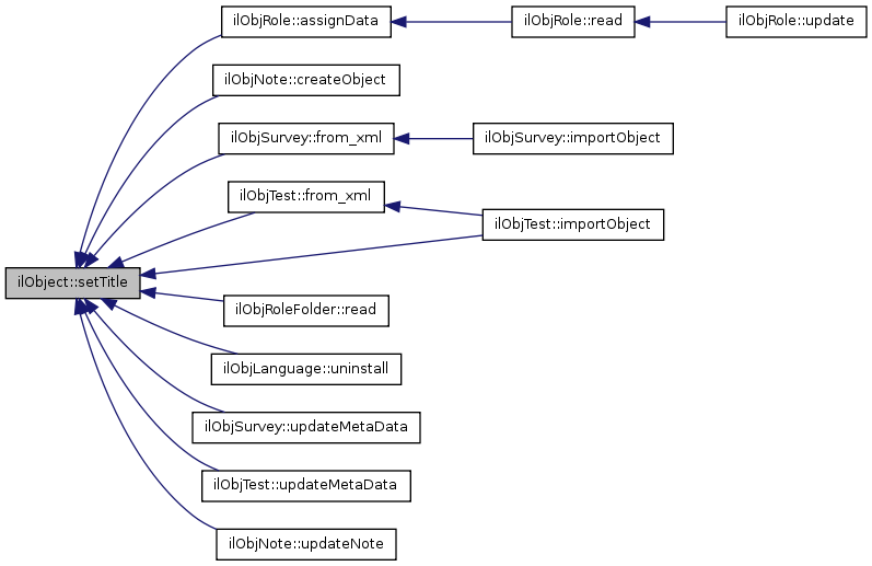 Here is the caller graph for this function:| ilObject::setTitle | ( | $ | a_title | ) |