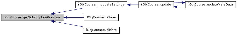 Here is the caller graph for this function:| ilObjCourse::setSubscriptionPassword | ( | $ | a_value | ) |