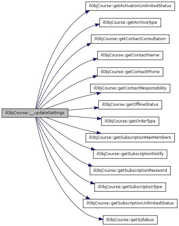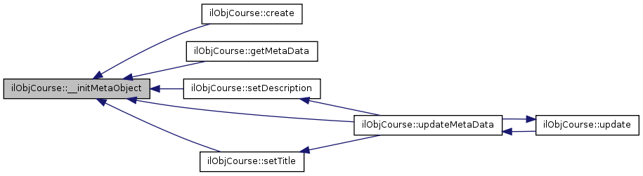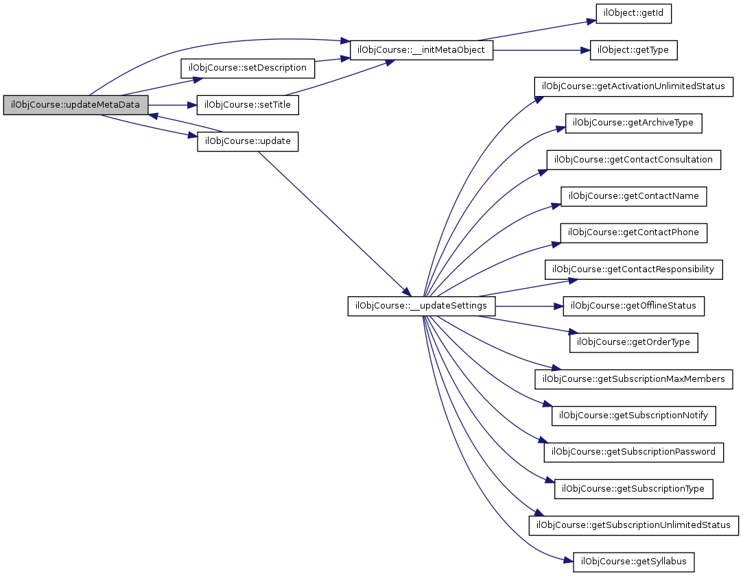 Here is the caller graph for this function:| ilObjCourse::updateMetaData | ( | ) |