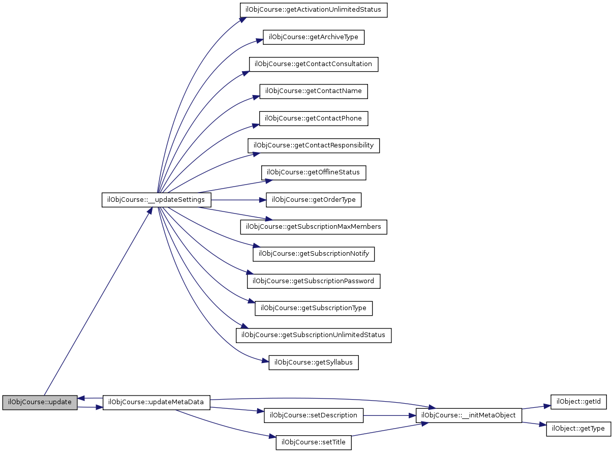 Here is the caller graph for this function:| ilObjCourse::update | ( | ) |