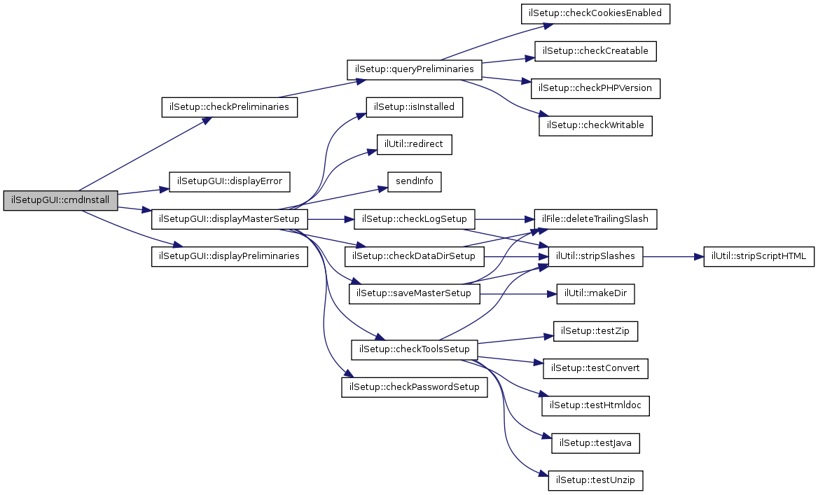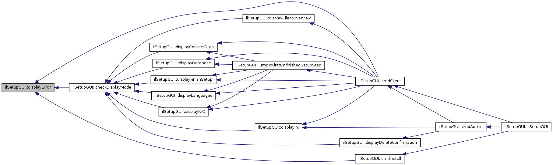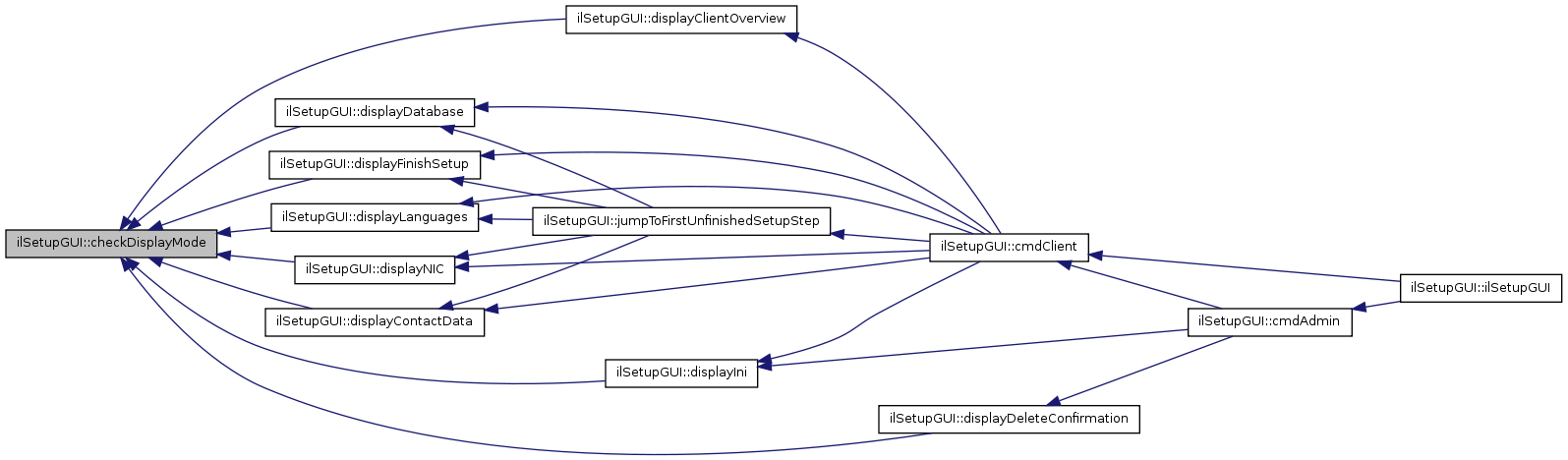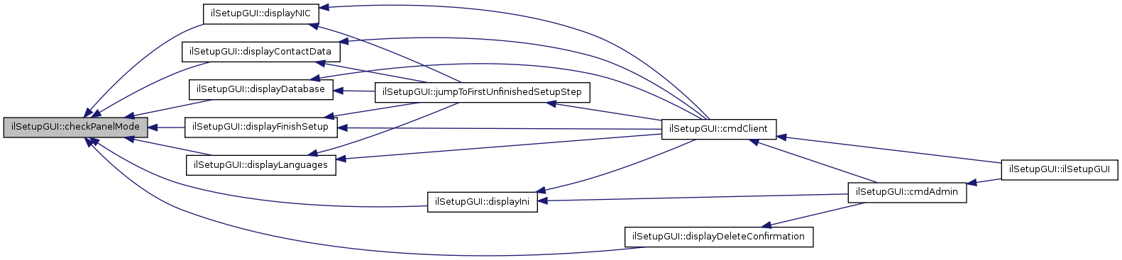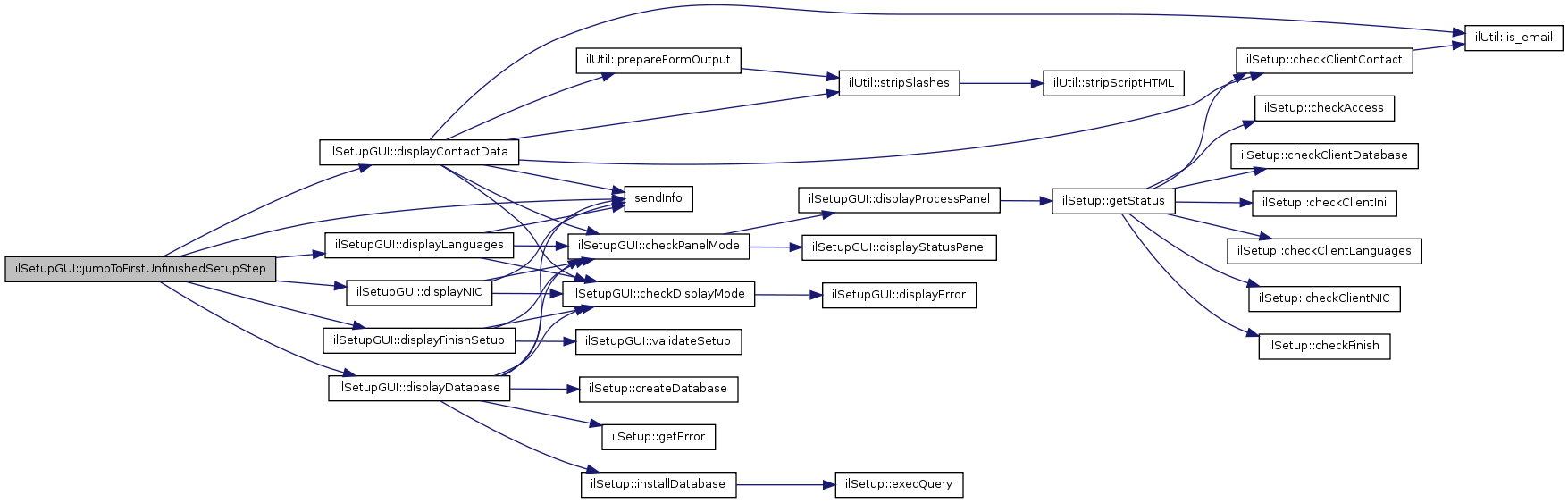 Here is the call graph for this function:| ilSetupGUI::jumpToFirstUnfinishedSetupStep | ( | ) |