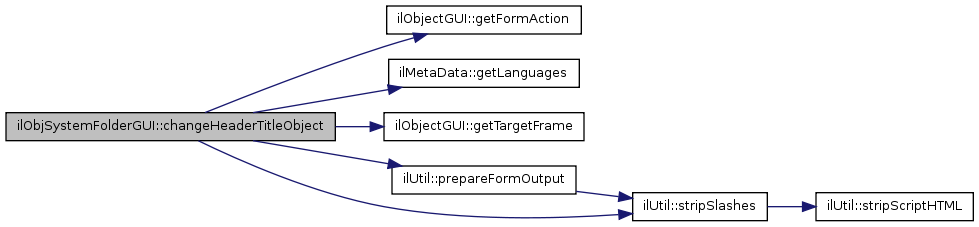 Here is the call graph for this function:| ilObjSystemFolderGUI::changeHeaderTitleObject | ( | ) |