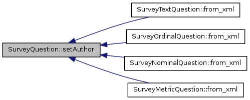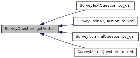 Here is the call graph for this function:| SurveyQuestion::$author |