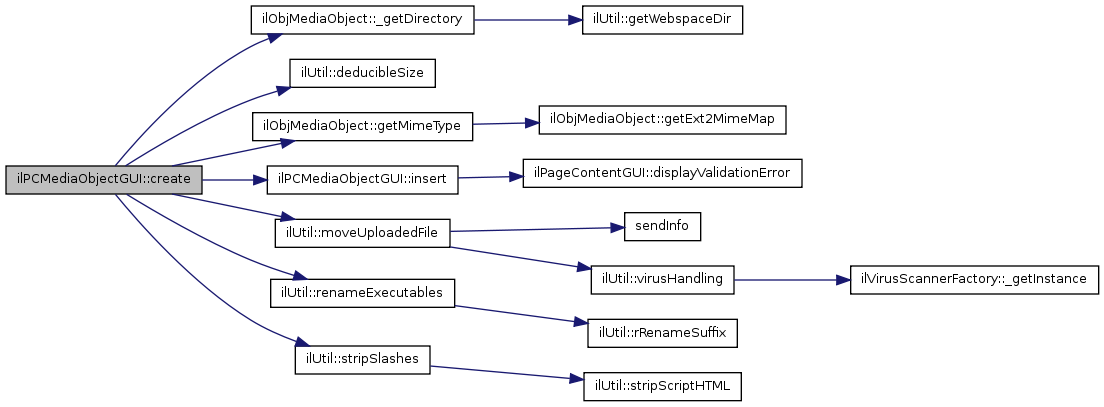 Here is the call graph for this function:| & ilPCMediaObjectGUI::create | ( | $ | a_create_alias = true |