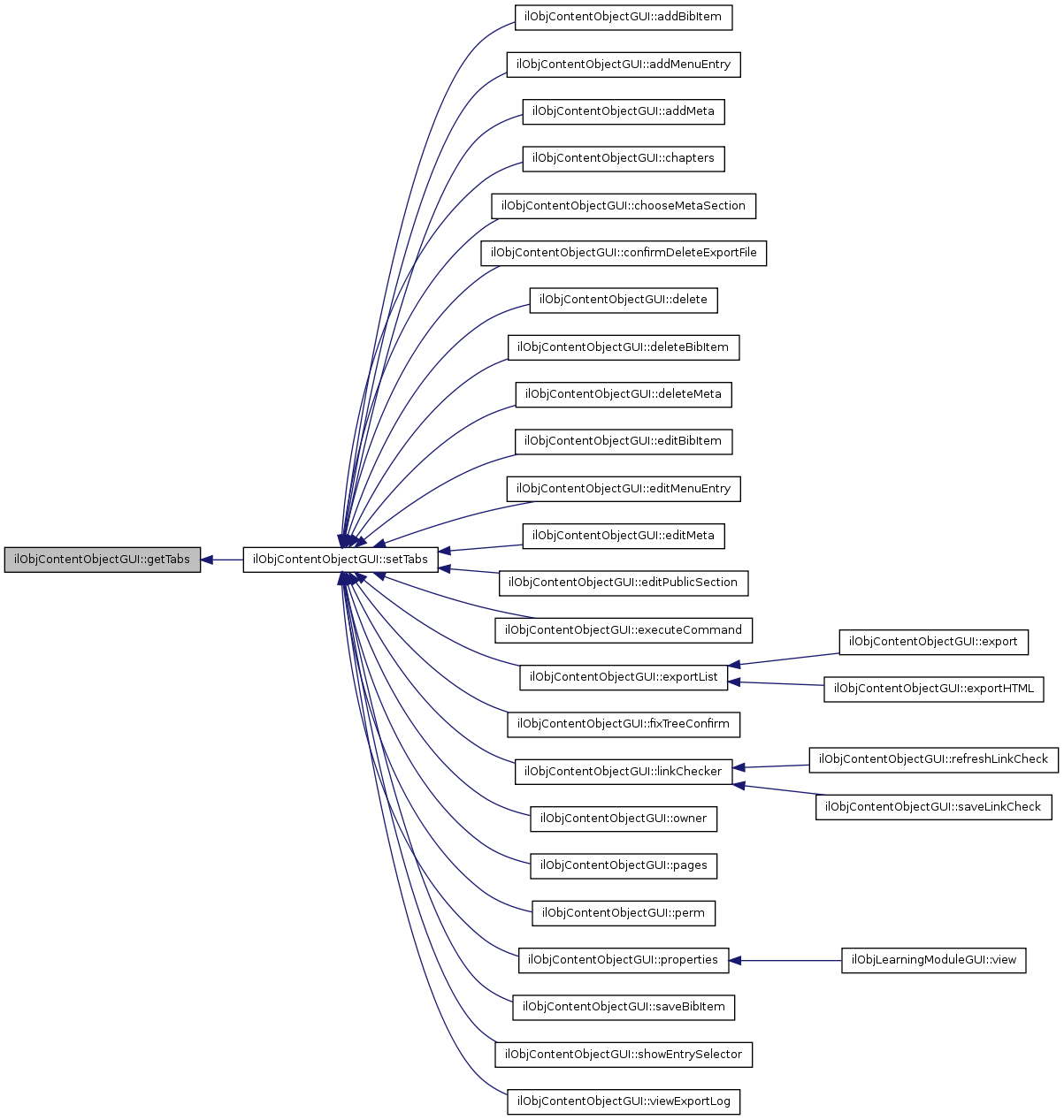 Here is the call graph for this function:| ilObjContentObjectGUI::setTabs | ( | ) |