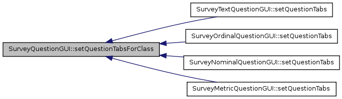 Here is the caller graph for this function:| SurveyQuestionGUI::setQuestionTabsForClass | ( | $ | guiclass | ) |