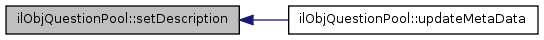 Here is the call graph for this function:| ilObjQuestionPool::setDescription | ( | $ | a_description | ) |