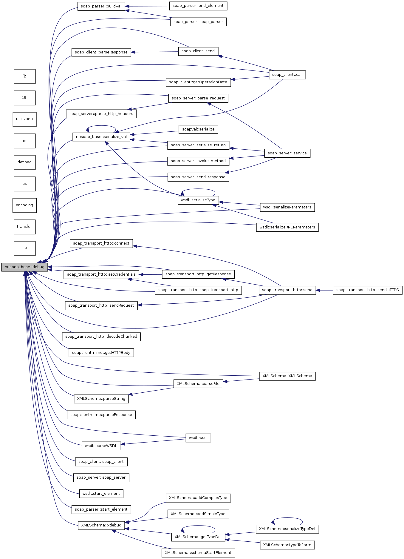 Referenced by soap_parser::buildVal(), soap_client::call(), soap_transport_http::connect(), soap_transport_http::decodeChunked(), soapclientmime::getHTTPBody(), soap_client::getOperationData(), soap_transport_http::getResponse(), soap_server::invoke_method(), soap_server::parse_http_headers(), soap_server::parse_request(), XMLSchema::parseFile(), soapclientmime::parseResponse(), soap_client::parseResponse(), XMLSchema::parseString(), wsdl::parseWSDL(), soap_client::send(), soap_transport_http::send(), soap_server::send_response(), soap_transport_http::sendRequest(), soap_server::serialize_return(), serialize_val(), wsdl::serializeParameters(), wsdl::serializeRPCParameters(), wsdl::serializeType(), soap_transport_http::setCredentials(), soap_client::soap_client(), soap_parser::soap_parser(), soap_server::soap_server(), soap_transport_http::soap_transport_http(), wsdl::start_element(), soap_parser::start_element(), wsdl::wsdl(), XMLSchema::xdebug(), and XMLSchema::XMLSchema().