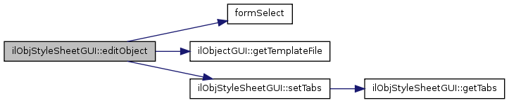 Here is the call graph for this function:| ilObjStyleSheetGUI::editObject | ( | ) |