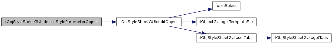 Here is the call graph for this function:| ilObjStyleSheetGUI::deleteStyleParameterObject | ( | ) |