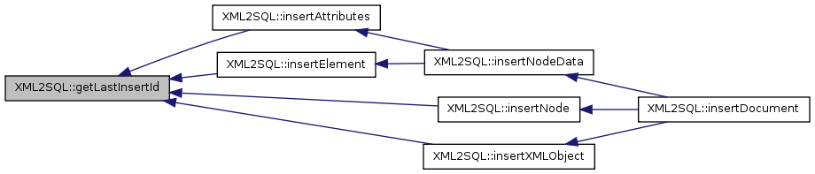 Here is the caller graph for this function:| XML2SQL::getLastInsertId | ( | ) |