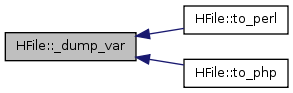 Here is the caller graph for this function:| HFile::_dump_var | ( | $ | variable, | |