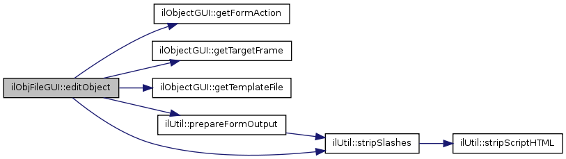 Here is the call graph for this function:| ilObjFileGUI::editObject | ( | ) |