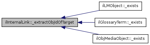 Here is the caller graph for this function:| ilInternalLink::_extractObjIdOfTarget | ( | $ | a_target | ) |