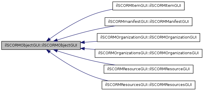 Inheritance diagram for ilSCORMObjectGUI:Public Member Functions | |