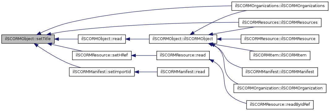 Here is the caller graph for this function:| ilSCORMObject::setTitle | ( | $ | a_title | ) |