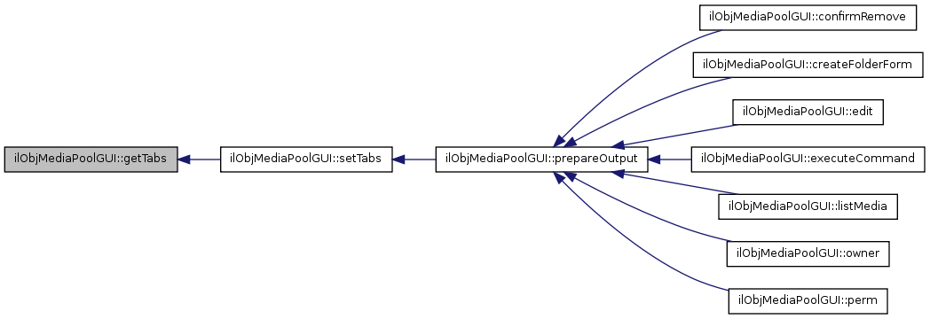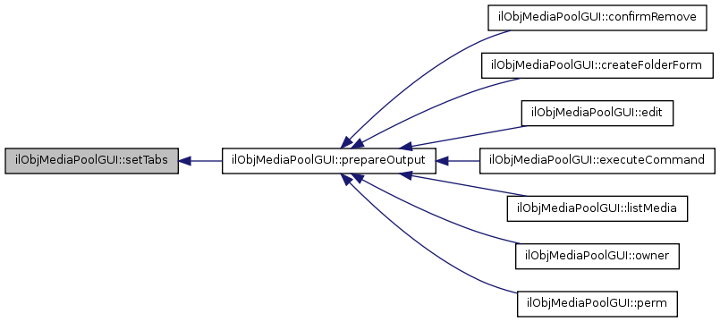 Here is the caller graph for this function:| ilObjMediaPoolGUI::setTabs | ( | ) |