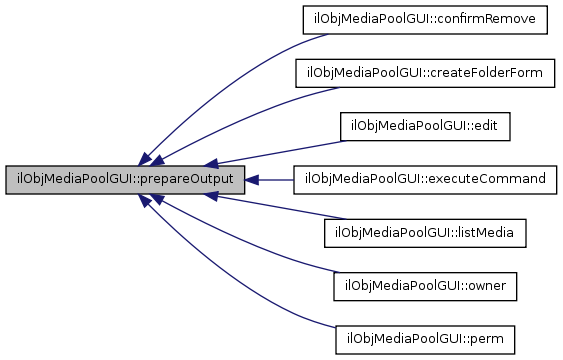 Here is the call graph for this function:| ilObjMediaPoolGUI::$output_prepared |