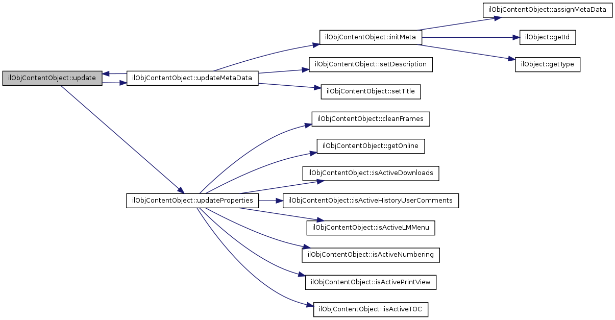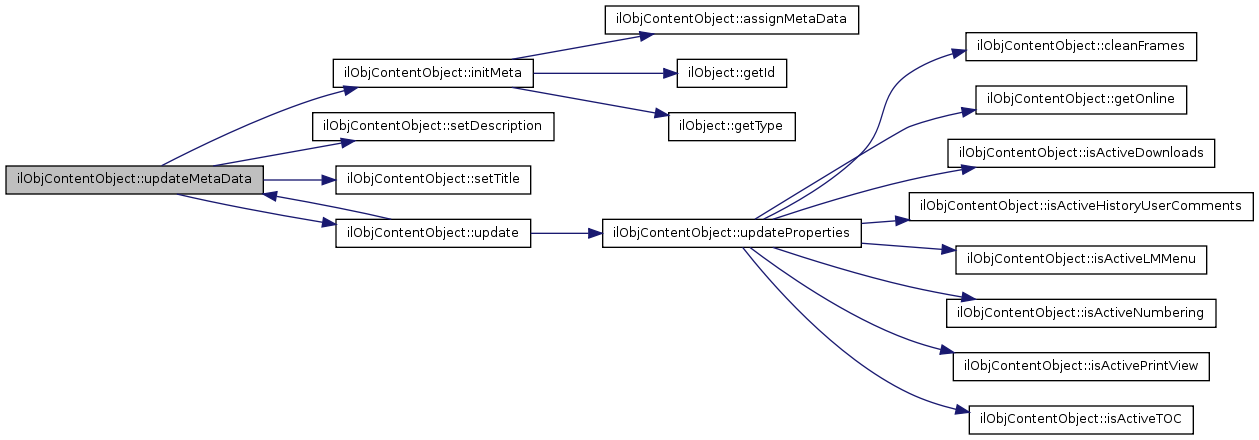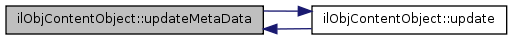 Here is the caller graph for this function:| ilObjContentObject::updateMetaData | ( | ) |