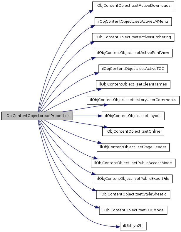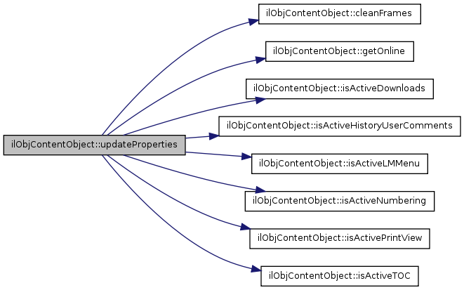 Here is the caller graph for this function:| ilObjContentObject::updateProperties | ( | ) |