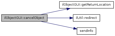 Referenced by ilObjGroupGUI::canceledObject(), ilObjGroupGUI::cancelMemberObject(), ilObjCourseGUI::cancelMemberObject(), ilObjUserGUI::cancelObject(), ilObjRoleGUI::cancelObject(), ilObjFileGUI::cancelObject(), cancelObject(), and ilObjUserFolderGUI::importCancelledObject().
