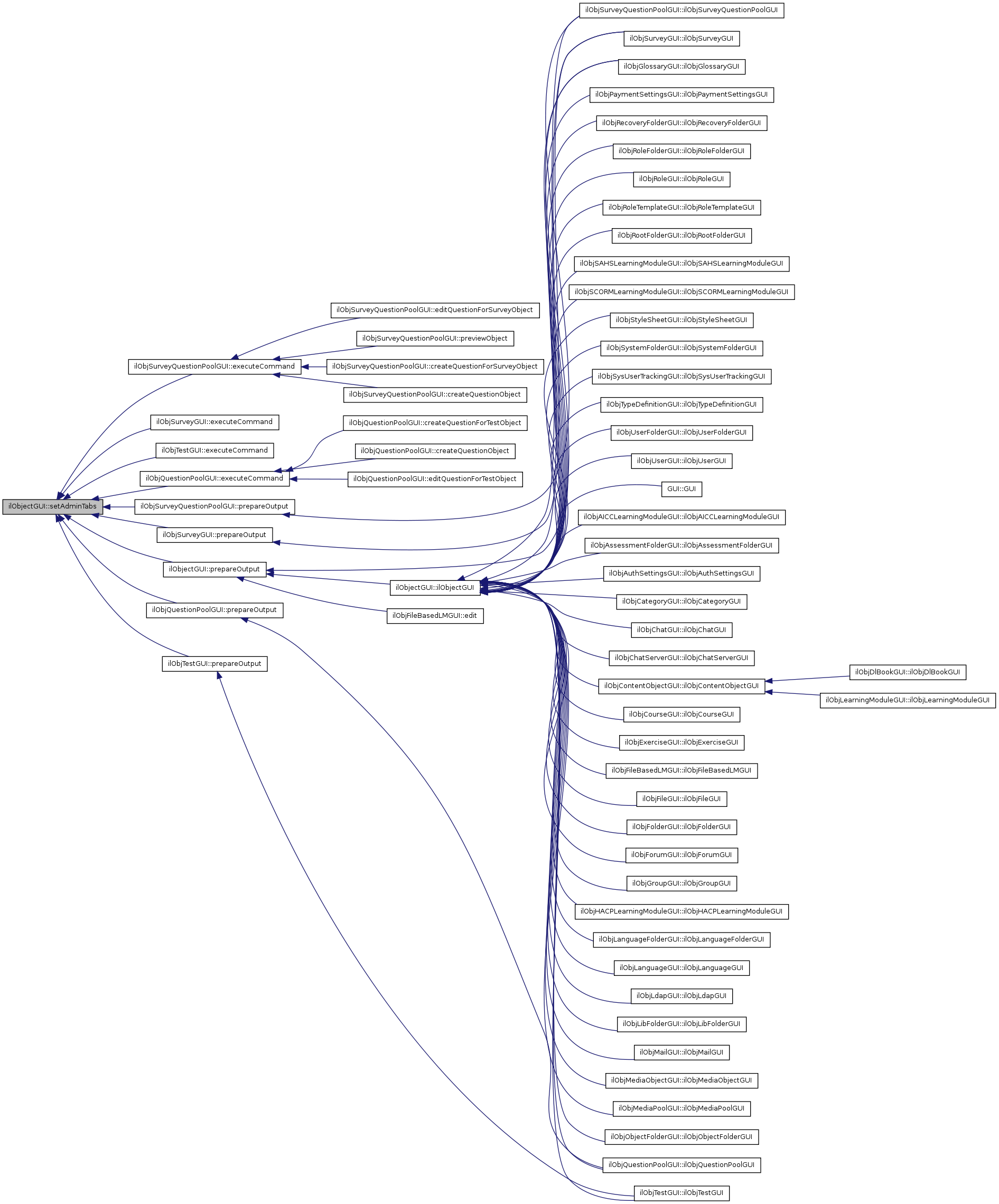 Reimplemented in ilObjQuestionPoolGUI, ilObjChatServerGUI, ilObjCategoryGUI, ilObjExerciseGUI, ilObjFileGUI, ilObjForumGUI, ilObjGroupGUI, ilObjRoleGUI, ilObjRoleTemplateGUI, ilObjStyleSheetGUI, ilObjUserGUI, ilObjCourseGUI, ilObjSurveyGUI, and ilObjSurveyQuestionPoolGUI.