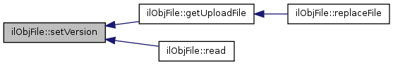 Here is the caller graph for this function:| ilObjFile::setVersion | ( | $ | a_version | ) |