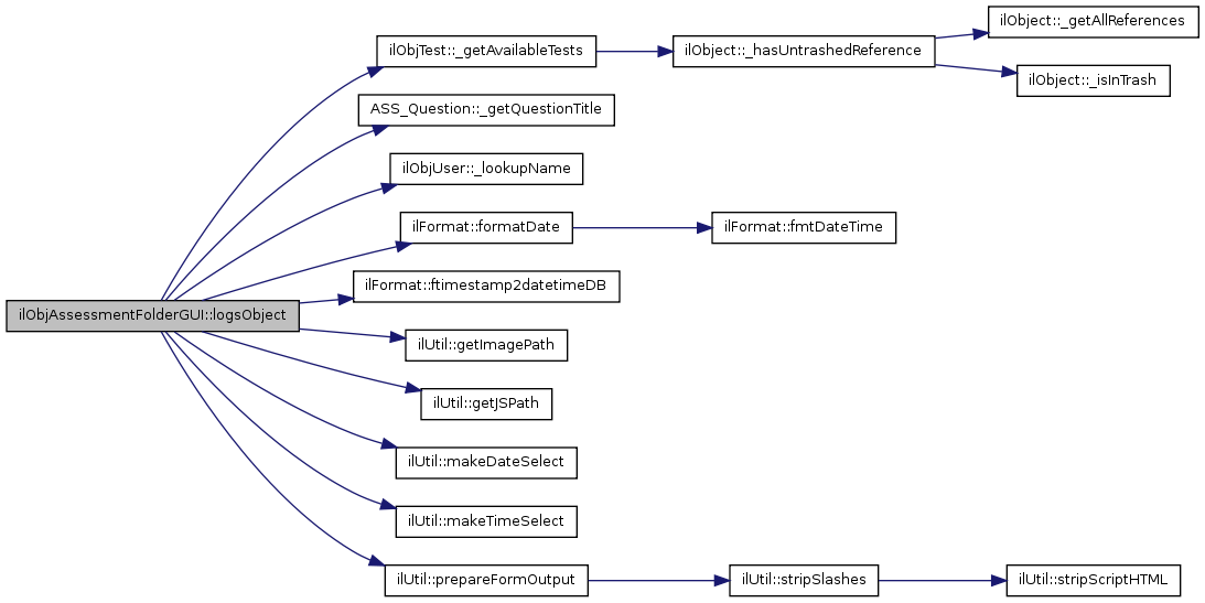 Here is the call graph for this function:| ilObjAssessmentFolderGUI::logsObject | ( | ) |