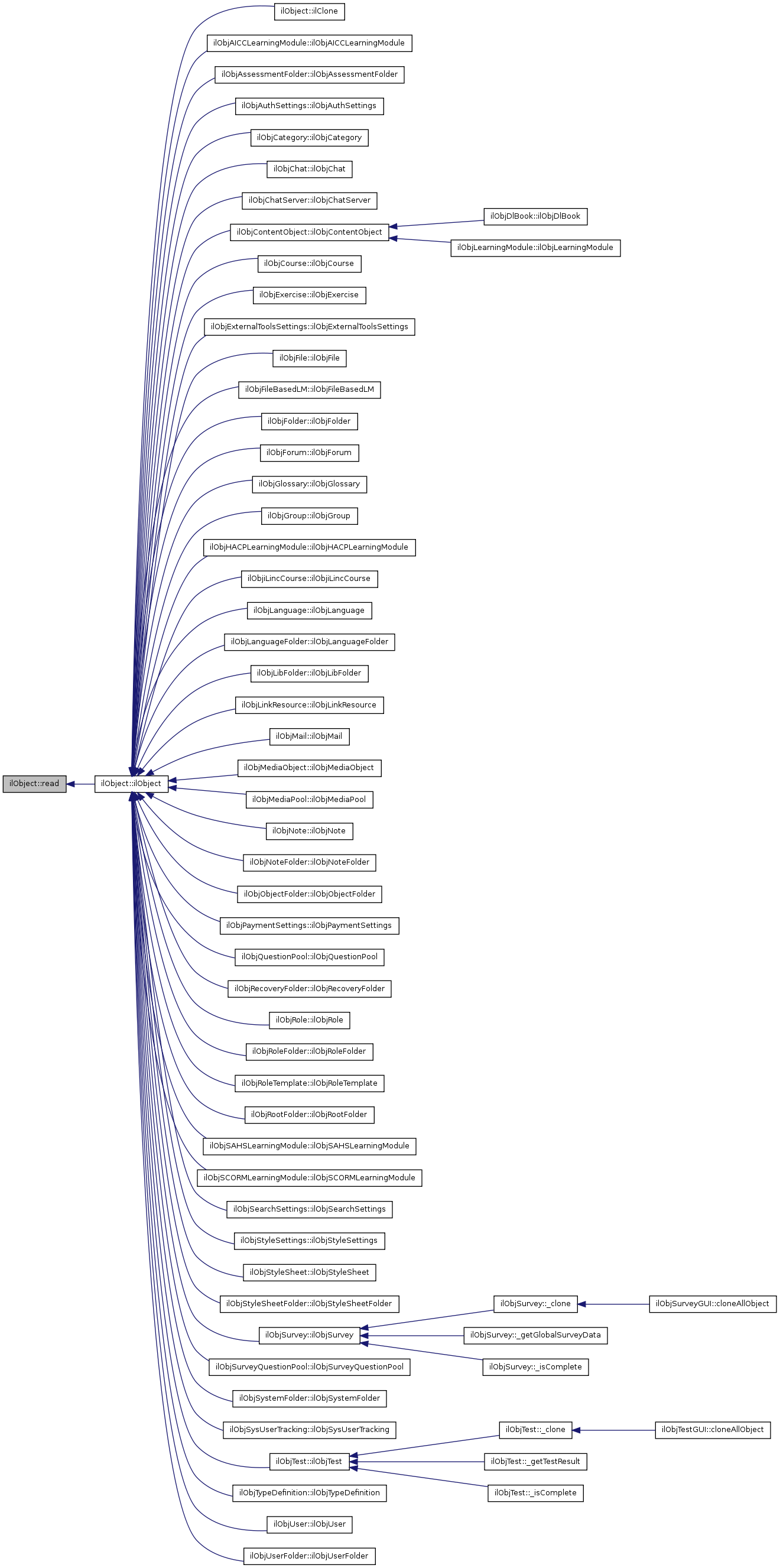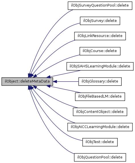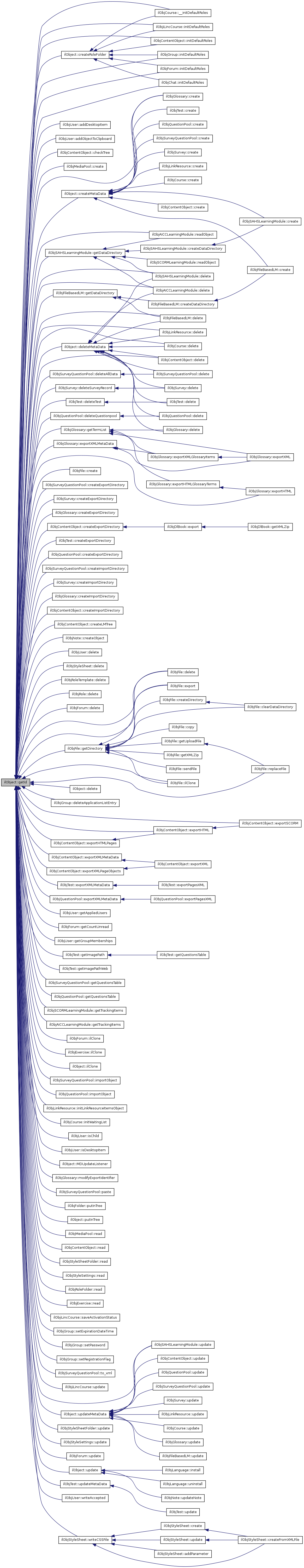 Reimplemented in ilObjQuestionPool, ilObjTest, ilObjAssessmentFolder, ilObjAuthSettings, ilObjExercise, ilObjExternalToolsSettings, ilObjFile, ilObjForum, ilObjMediaObject, ilObjRecoveryFolder, ilObjRole, ilObjStyleSettings, ilObjStyleSheet, ilObjStyleSheetFolder, ilObjSysUserTracking, ilObjUser, ilObj< module_name >, ilObjContentObject, ilObjFileBasedLM, ilObjGlossary, ilObjMediaPool, ilObjSAHSLearningModule, ilObjMediaObject, ilObjCourse, ilObjiLincClassroom, ilObjiLincCourse, ilObjLinkResource, ilObjPaymentSettings, ilObjSearchSettings, ilObjSurvey, and ilObjSurveyQuestionPool.