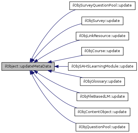 Here is the caller graph for this function:| ilObject::updateMetaData | ( | ) |