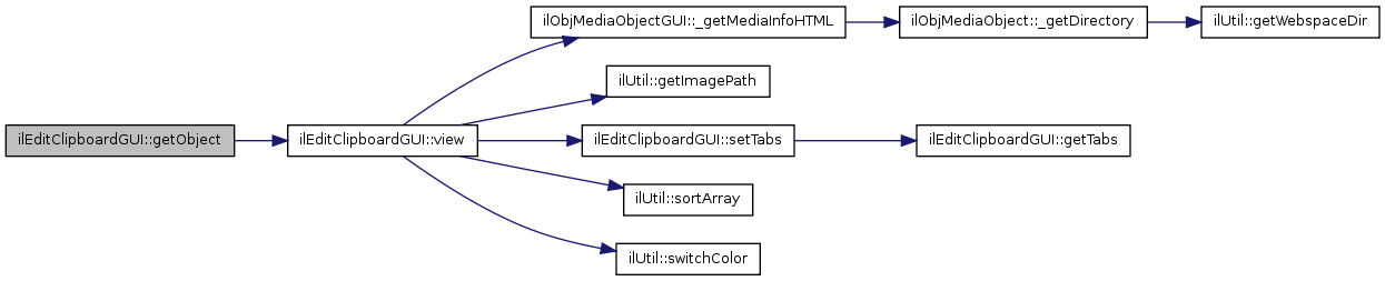 Here is the caller graph for this function:| ilEditClipboardGUI::getObject | ( | ) |
