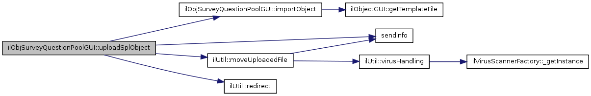 Here is the call graph for this function:| ilObjSurveyQuestionPoolGUI::uploadSplObject | ( | $ | redirect = true |