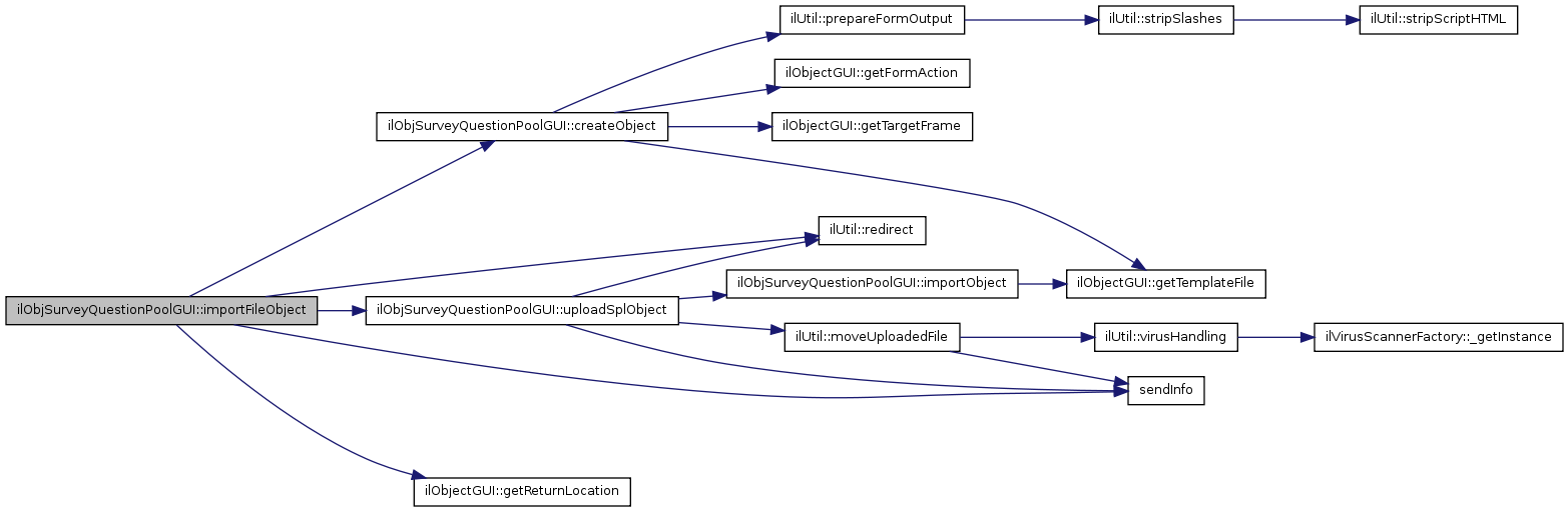 Here is the call graph for this function:| ilObjSurveyQuestionPoolGUI::uploadQuestionsObject | ( | ) |