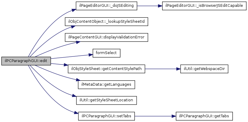Here is the call graph for this function:| ilPCParagraphGUI::edit | ( | ) |