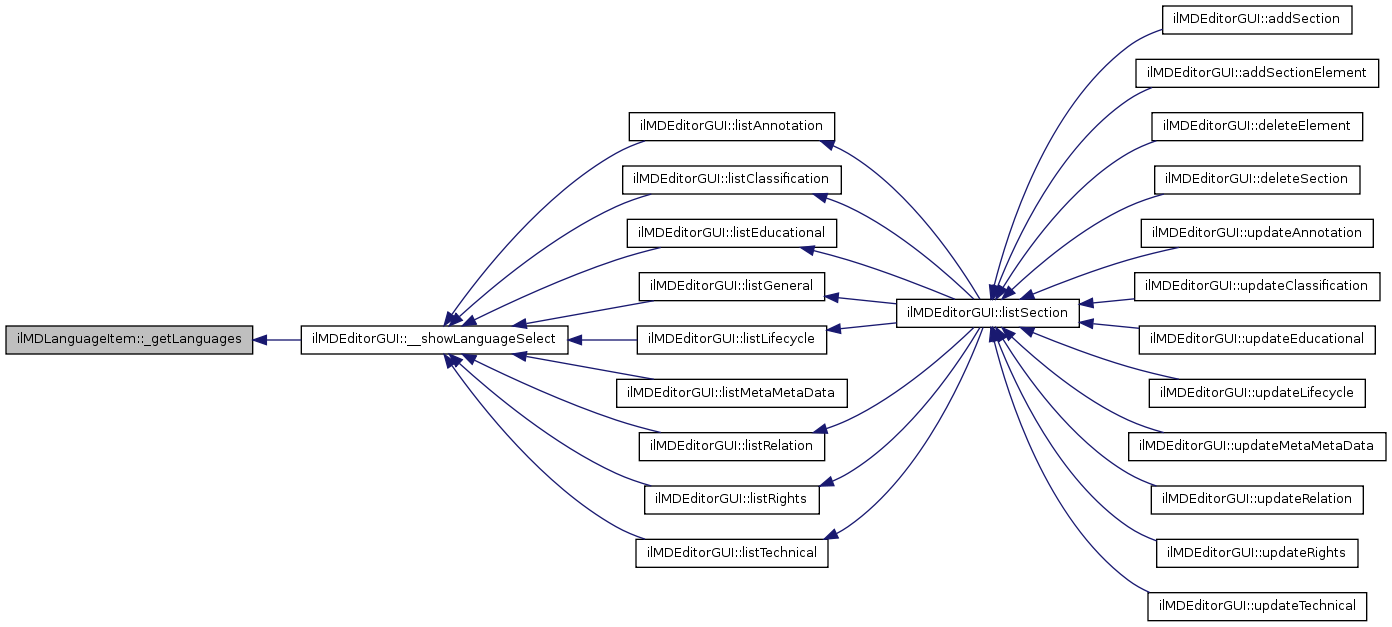 Here is the caller graph for this function:| ilMDLanguageItem::_getLanguages | ( | ) |