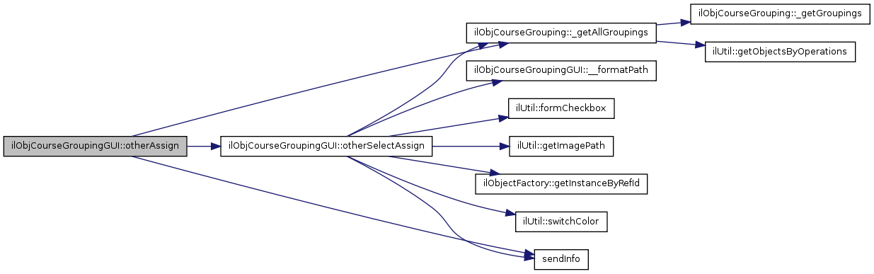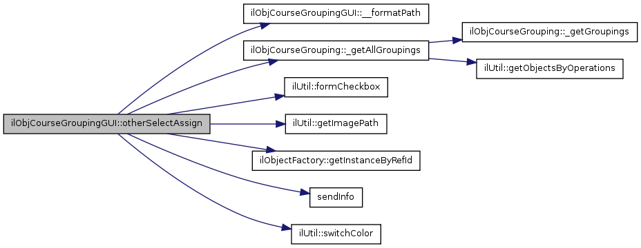 Here is the call graph for this function:| ilObjCourseGroupingGUI::otherAssign | ( | ) |