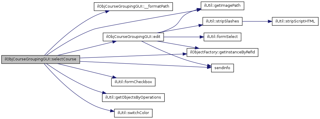 Here is the caller graph for this function:| ilObjCourseGroupingGUI::selectCourse | ( | ) |
