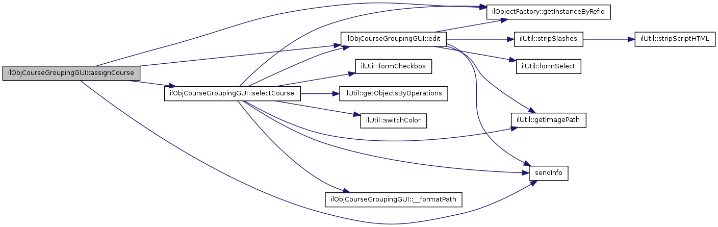 Here is the call graph for this function:| ilObjCourseGroupingGUI::assignCourse | ( | ) |