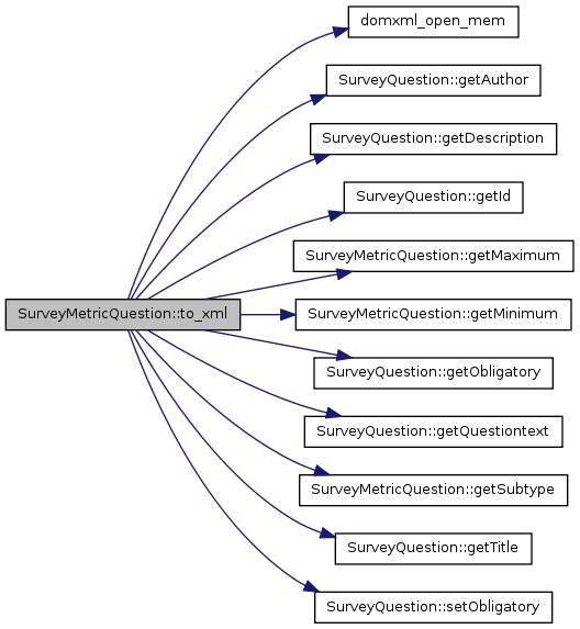 Here is the call graph for this function:| SurveyMetricQuestion::to_xml | ( | $ | a_include_header = true, |