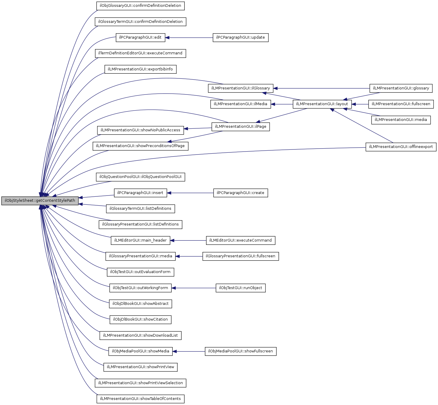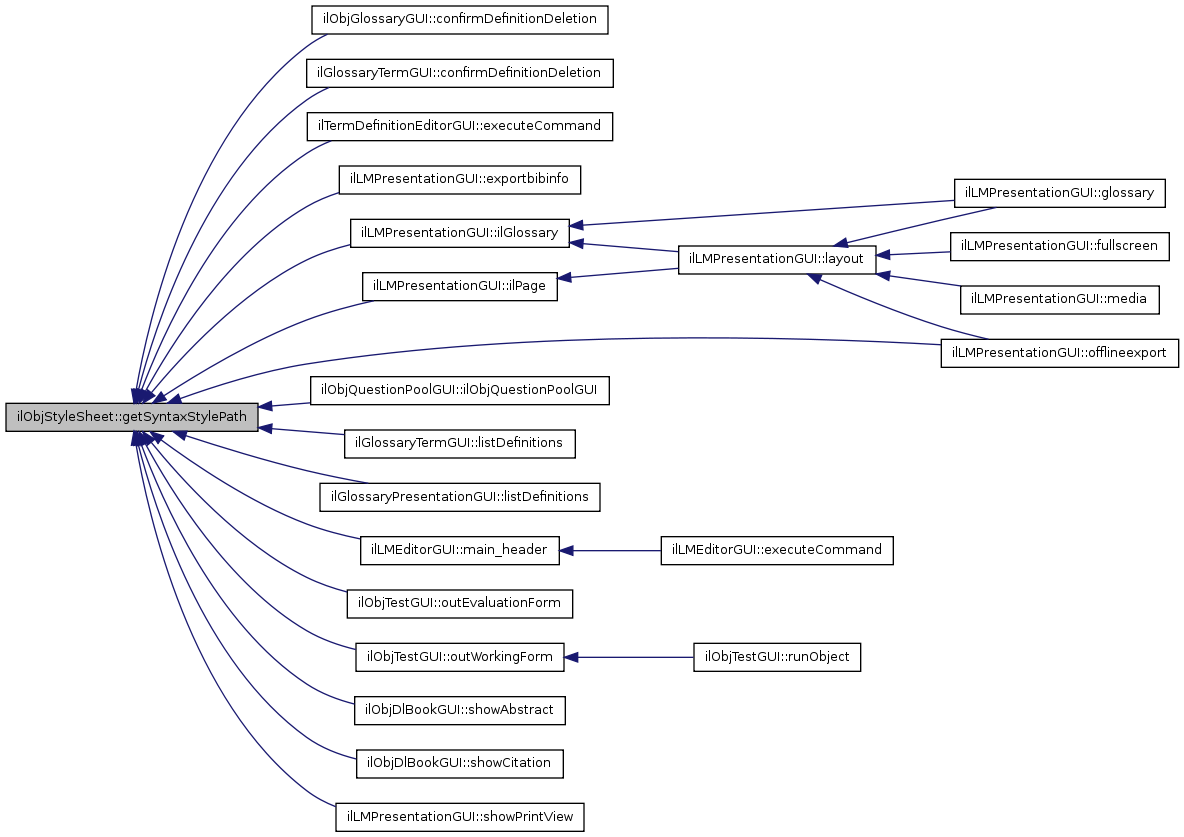 Here is the caller graph for this function:| ilObjStyleSheet::getSyntaxStylePath | ( | ) |