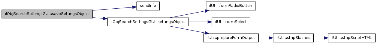 Here is the call graph for this function:| ilObjSearchSettingsGUI::saveSettingsObject | ( | ) |