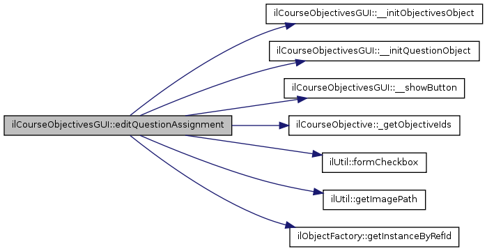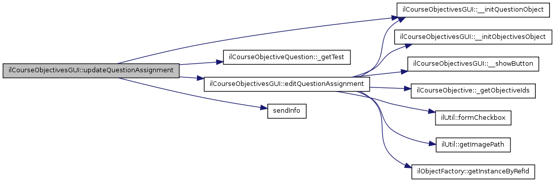 Here is the call graph for this function:| ilCourseObjectivesGUI::updateQuestionAssignment | ( | ) |
