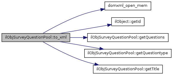 | ilObjSurveyQuestionPool::to_xml | ( | $ | questions | ) |