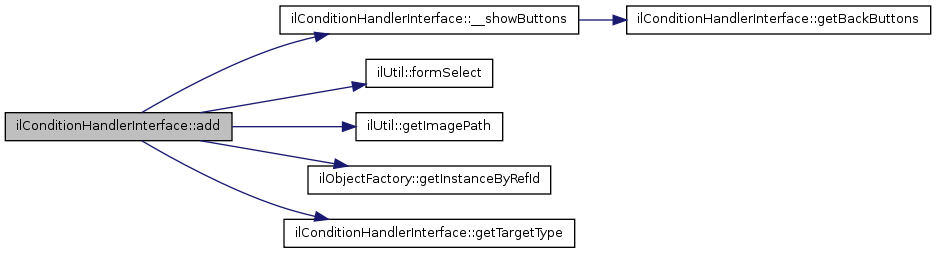 Here is the caller graph for this function:| ilConditionHandlerInterface::add | ( | ) |