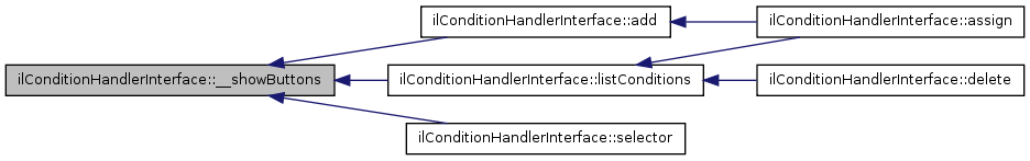 Here is the caller graph for this function:| ilConditionHandlerInterface::__showButtons | ( | ) |