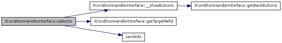 Here is the caller graph for this function:| ilConditionHandlerInterface::selector | ( | ) |