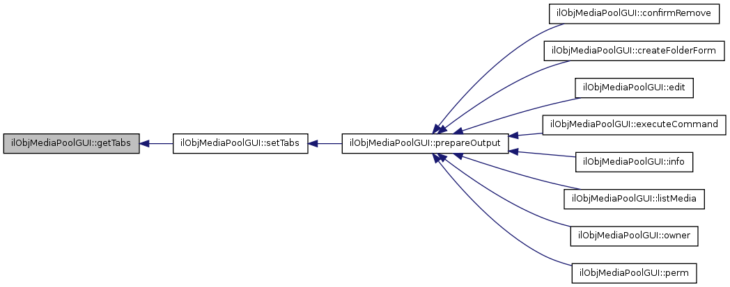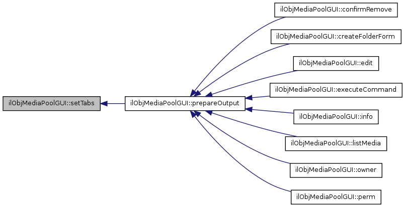 Here is the caller graph for this function:| ilObjMediaPoolGUI::setTabs | ( | ) |