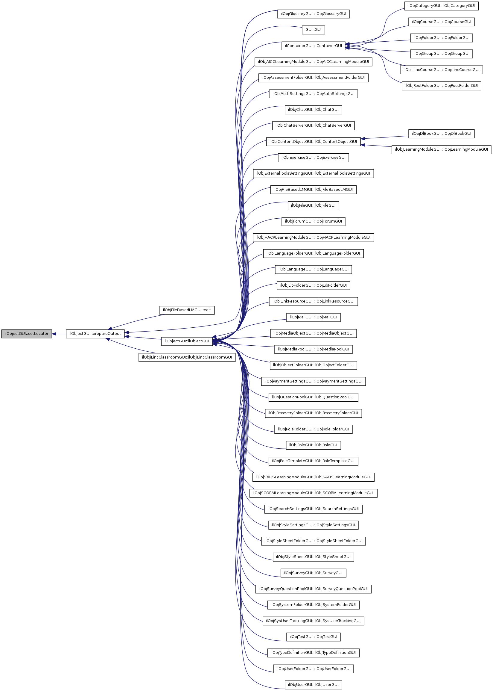 Referenced by ilObjLinkResourceGUI::__setLocator(), ilObjRoleGUI::__setLocator(), ilObjChatGUI::__setLocator(), ilObjContentObjectGUI::addLocations(), ilObjRoleGUI::adoptPermSaveObject(), ilObjContentObjectGUI::chapters(), ilObjContentObjectGUI::confirmedDelete(), ilObjTestGUI::createQuestionPool(), ilObjLanguageFolderGUI::displayList(), ilObjMediaPoolGUI::editObject(), ilObjFileBasedLMGUI::editObject(), ilPaymentPurchaseGUI::executeCommand(), ilObjMediaPoolGUI::executeCommand(), ilObjGlossaryGUI::exportList(), ilObjContentObjectGUI::exportList(), ilObjSurveyQuestionPoolGUI::exportObject(), ilObjSurveyGUI::exportObject(), ilObjTestGUI::exportObject(), ilObjQuestionPoolGUI::exportObject(), ilObjDlBookGUI::getContextPath(), ilObjectGUI(), ilObjiLincClassroomGUI::ilObjiLincClassroomGUI(), ilPaymentPurchaseGUI::ilPaymentPurchaseGUI(), ilObjUserFolderGUI::importUserRoleAssignmentObject(), ilObjUserFolderGUI::importUsersObject(), ilObjRoleGUI::listDesktopItemsObject(), ilObjMediaPoolGUI::listMedia(), ilObjiLincCourseGUI::listUsersGroupObject(), ilObjCourseGUI::listUsersGroupObject(), ilObjRoleGUI::listUsersGroupObject(), ilObjGroupGUI::listUsersGroupObject(), ilObjCourseGUI::listUsersRoleObject(), ilObjContentObjectGUI::pages(), ilObjRoleGUI::permObject(), ilObjRoleGUI::permSaveObject(), ilObjSCORMLearningModuleGUI::properties(), ilObjGlossaryGUI::properties(), ilObjFileBasedLMGUI::properties(), ilContainerGUI::renderObject(), ilObjPaymentSettingsGUI::searchObject(), ilObjiLincCourseGUI::searchObject(), ilObjCourseGUI::searchObject(), ilObjRoleGUI::searchObject(), ilObjGroupGUI::searchObject(), ilObjRoleGUI::selectDesktopItemObject(), ilObjSAHSLearningModuleGUI::setLocator(), ilObjMediaPoolGUI::setLocator(), ilObjFileBasedLMGUI::setLocator(), ilObjGlossaryGUI::viewExportLog(), ilObjContentObjectGUI::viewExportLog(), ilObjiLincCourseGUI::viewObject(), ilObjGroupGUI::viewObject(), and ilObjFolderGUI::viewObject().